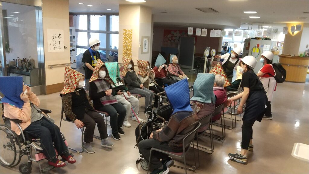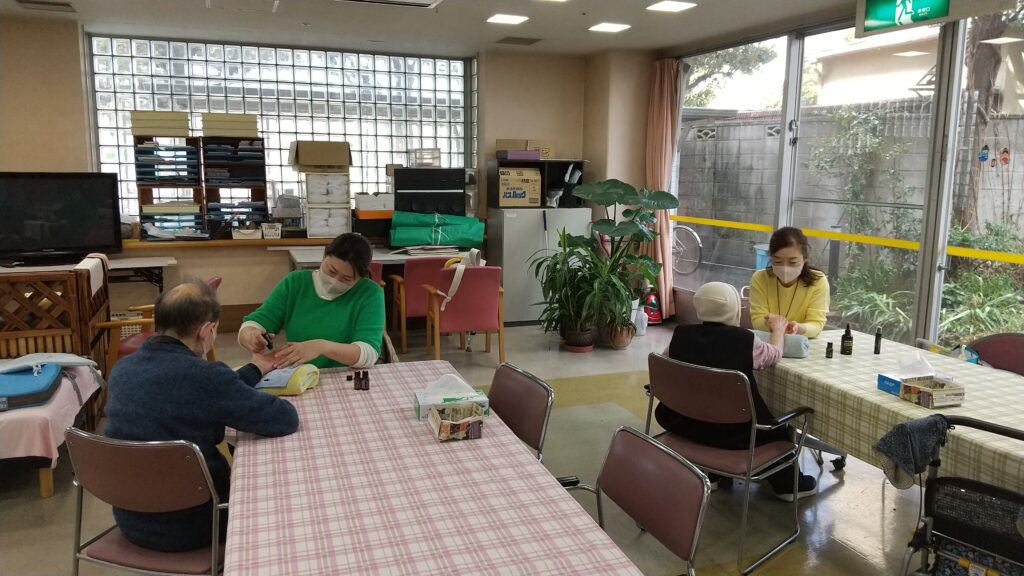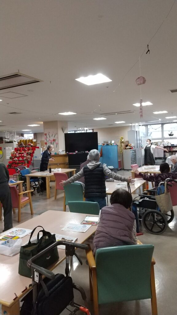 デイサービスの活動あれこれ☺ 2月19日に避難訓練を行いました。避難誘導後には、東京消防庁からのお知らせ『ストップ!住宅火災』についてご利用者の皆様へお話させて頂きました。ご参加の皆様、ありがとうございました。 毎日のラジオ体操! 今年も雛段飾りを皆様に楽しんで頂けました。お一人ずつ、ご希望の方へ記念写真も撮らせて頂きました🎎 今月もアロマハンドマッサージのボランティアで、LOVE HANDSの皆様が来て下さいました♡いつも、ありがとうございます。 ご参加の皆様、マッサージだけではなく、ゆっくりとお話も出来て、とても嬉しそうでした。 棒体操も先週行いました。皆様、振りかぶって、ヤーッ!3月の後半は、ボランティアさんによる銭太鼓や、ストレッチ体操、音楽レクなどを予定しております。お楽しみにしていて下さい!