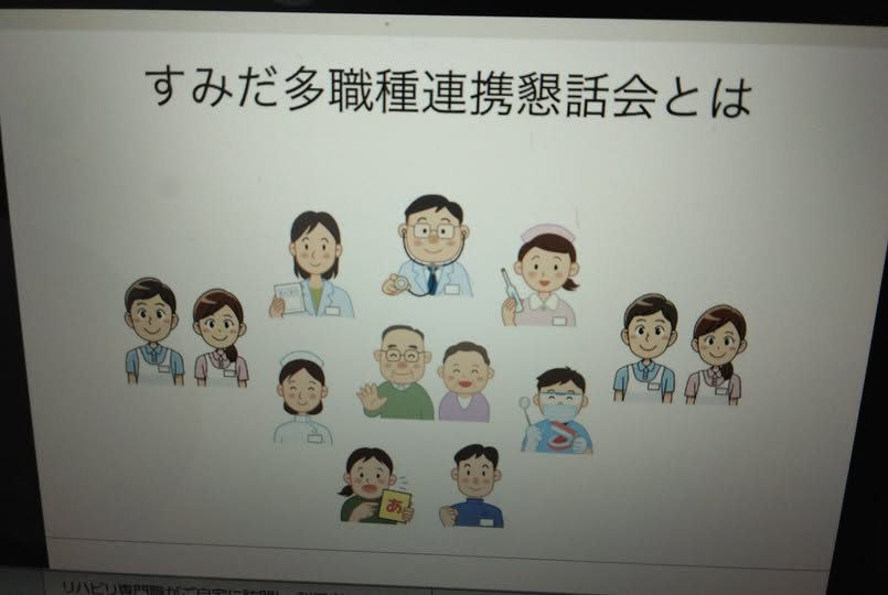 墨田区在宅リハビリテーション支援事業についてのお話でした。こうした事業を活用出来れば良いと感じました。
