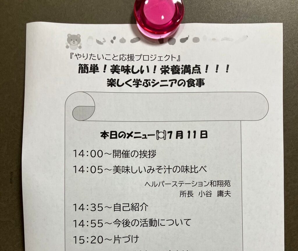 7月11日(金)にやりたいことプロジェクトのお手伝いをしてきました。調理に関心のある方が集まっているので、味噌汁の塩分濃度計を使って、どれが丁度良いと思うかを知ってもらいました。