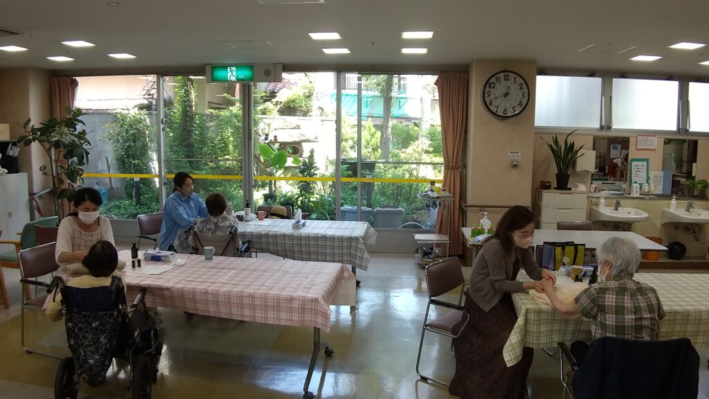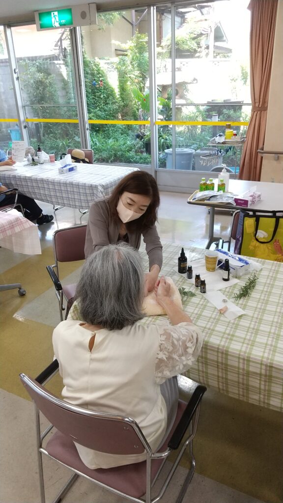 アロマハンドマッサージ③♡~デイサービス~ 投稿者:washouen 2025年8月5日2025年8月5日 お馴染みのLOVE HANDSの皆様が、デイサービスへ7月28日(月)に来て下さいました! アロマオイルの素敵な香りとマッサージも勿論気持ち良いご様子ですが、マッサージをしながら、お話をゆっくりと聴いて下さる事も、ご利用者の皆様はとても楽しそうです(⌒∇⌒)また9月に来て下さる予定です。LOVE HANDSの皆様、いつもありがとうございます!