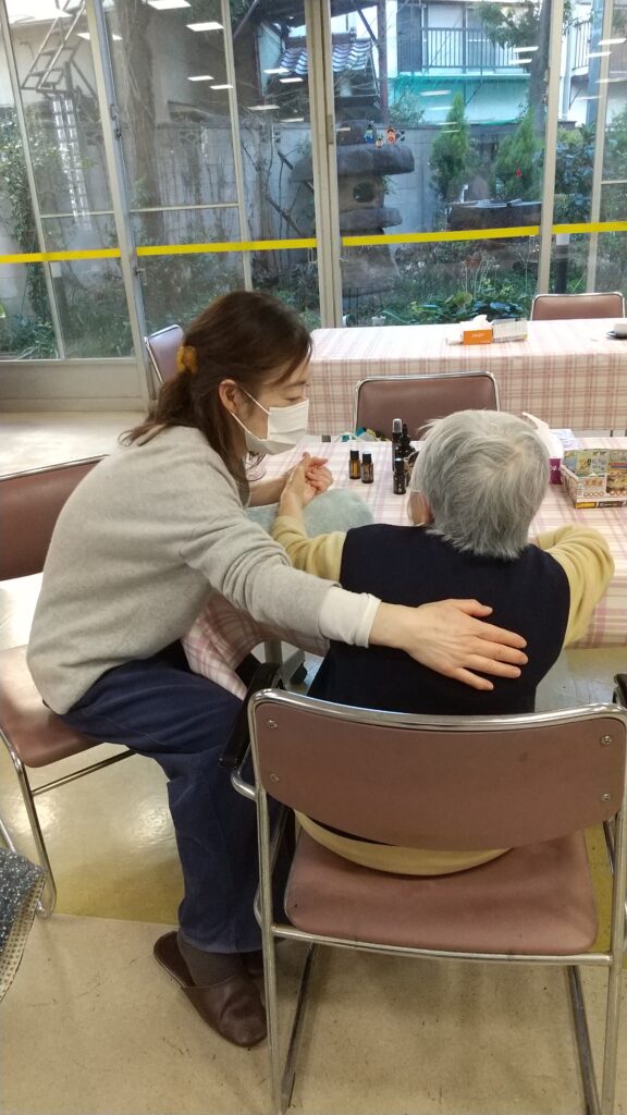 優しく包み込んで下さるハンドマッサージだけではなく、お話を優しくゆっくりと聴いて下さいますので、ご利用者の皆様、とても嬉しそうでした。